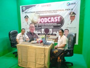 Dobo-Diskominfo. Sosialisasi Proyek Perubahan melalui Podcast dengan judul Strategis Implementasi Bina Inovasi Pembangunan Aru sebagai suatu persyaratan dalam menyelesaikan proyek perubahan dalam Pelatihan Kepemimpinan Nasional PKN II yang diikuti oleh Kepala Dinas Komunikasi dan Informatika Kabupaten Kepulauan Aru Armand Walay S.Pi, M.Ec.Dev Rabu (23/10/2024).